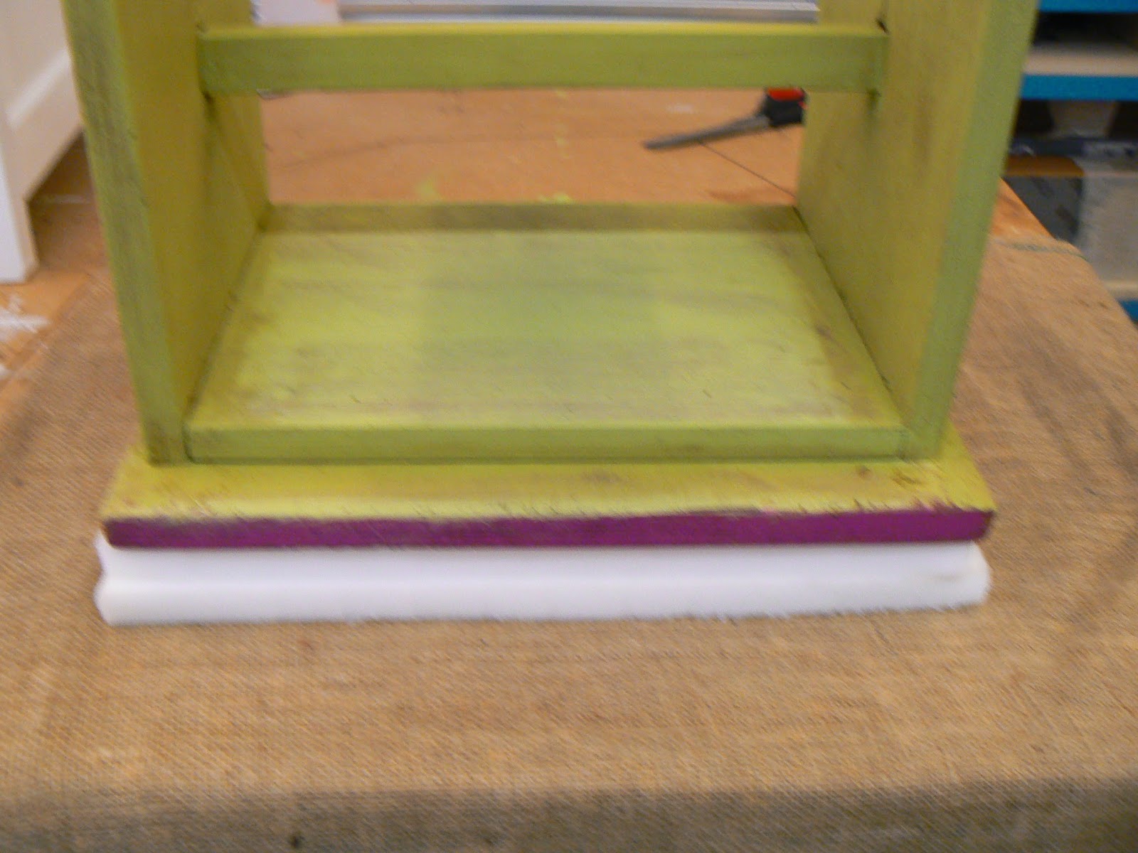 Όταν το σκαμνί στέγνωσε, έκοψα ένα κομμάτι αφρολέξ και το κόλλησα στην επιφάνεια του για να δημιουργήσω ένα μαλακό κάθισμα.