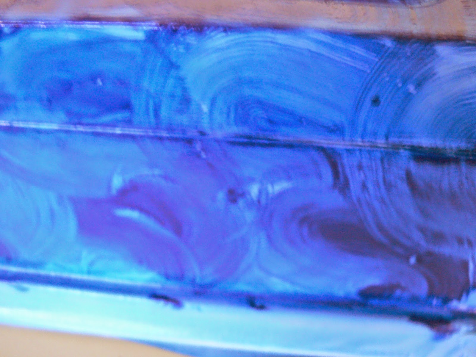 Μ ένα πινέλο σε σχήμα βεντάλιας κι αφού το είχα βουτήξει σε μπλε μπογιά, έβαψα την επιφάνεια του και τα πλαινά του με κυκλικές κινήσεις κι έτσι απέκτησε αυτή την μορφή…