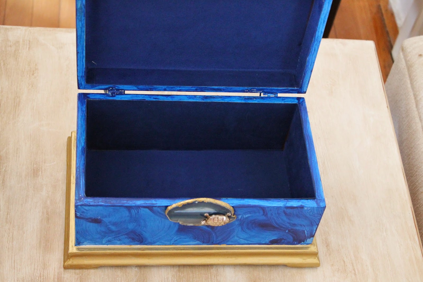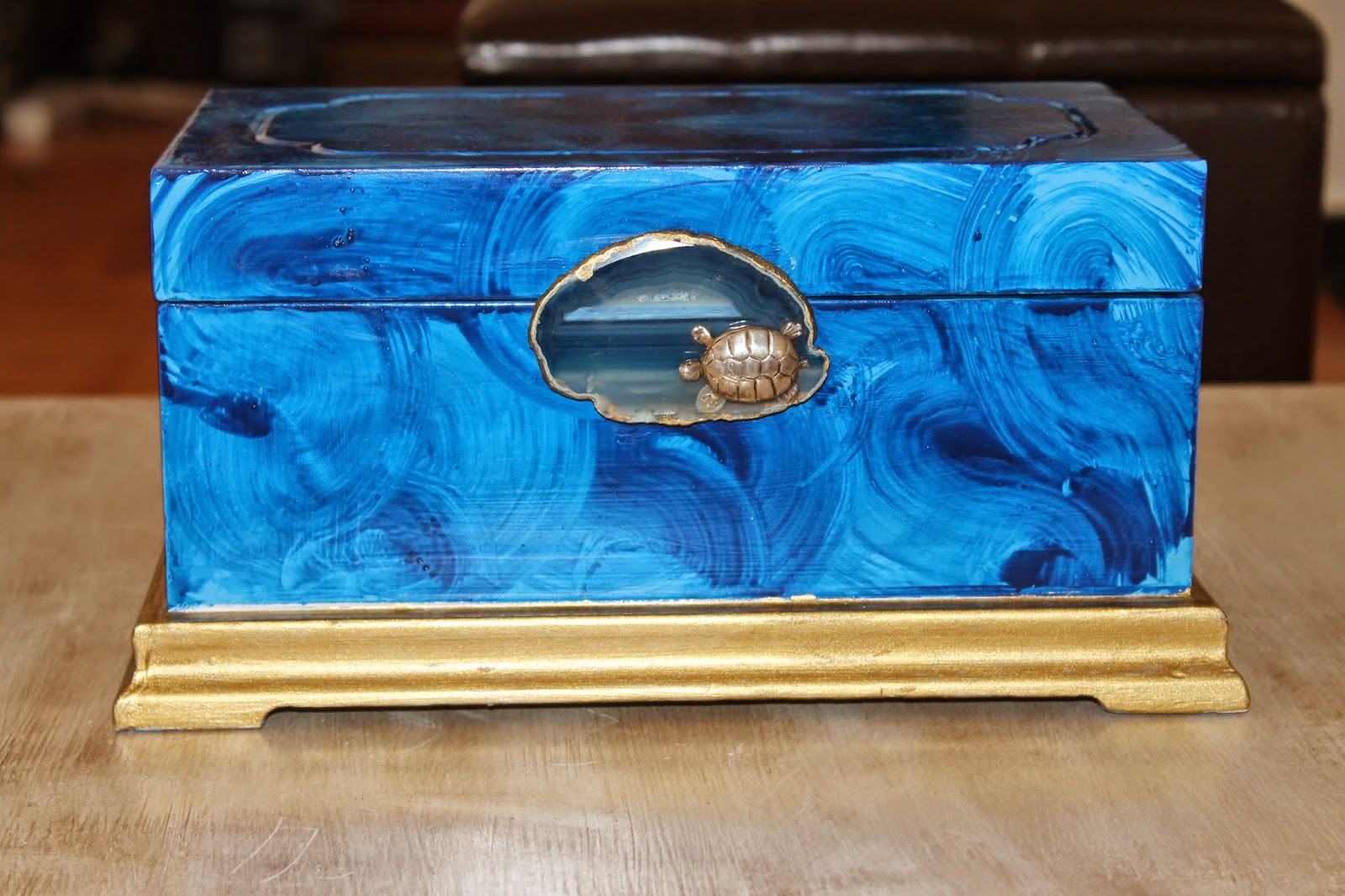 Πως να φτιάξεις εφέ μαλαχίτη πάνω σε οποιαδήποτε επιφάνεια όπως έκανα εγώ εδώ στην μπλε μπιζουτιέρα. Ένα παλιό ξύλινο κουτί έγινε σαν κόσμημα!