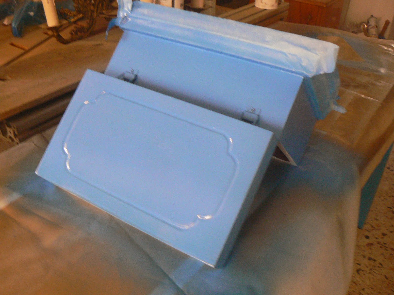 Το ωραίο γαλάζιο κουτί μεταφέρθηκε σε άλλο πάγκο γιατί η μεταμόρφωση του δεν είχε τελειώσει.