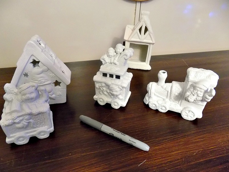 Όταν η μεγάλη μου κόρη ήταν ακόμη πολύ μικρή, είχα αγοράσει για το δωμάτιο της ένα τρενάκι και δυό σπιτάκια κεραμικά. Αυτά ήταν και η αρχή για να στηθεί το παγωμένο σκηνικό. Είχα αποφασίσει να τα βάψω λευκά και αυτά και όταν τα είδα βαμμένα στο μυαλό μου ήρθε η εικόνα να αποτελούν μέρος μιας χειμωνιάτικης, χιονισμένης σκηνής.