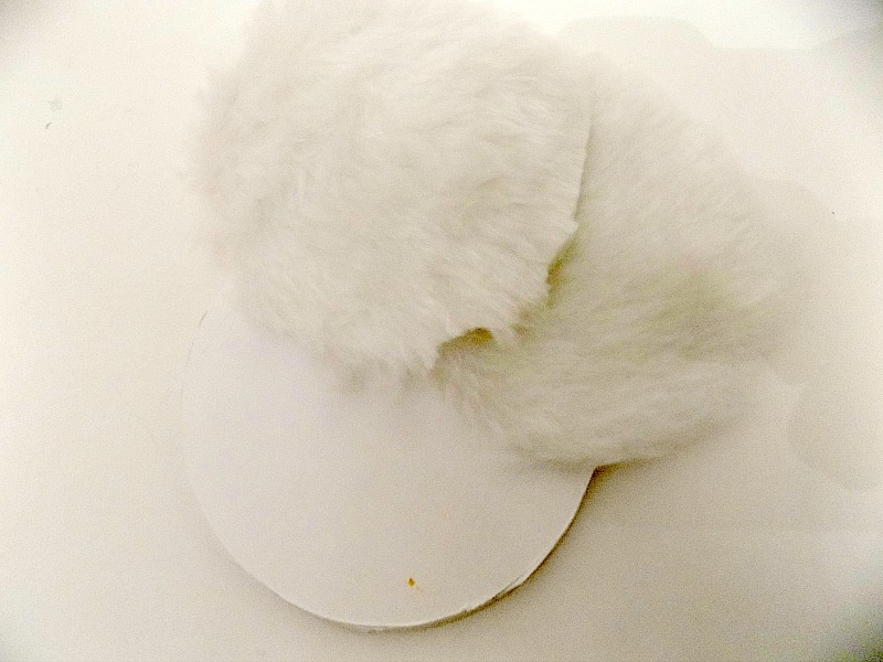 Είναι μια κατασκευή τόσο εύκολη σχεδόν παιδική θα έλεγα.  Τα υλικά που ήδη υπήρχαν, είναι ένα κομμάτι μακετόχαρτο, γούνα συνθετική που περίσσεψε από την Χριστουγεννιάτικη ποδιά, κόλλα, ψαλίδι, κορδέλα ένα μαχαιράκι και οποιοδήποτε στρογγυλό σκεύος για να κόψεις το σχήμα της μπάλας.