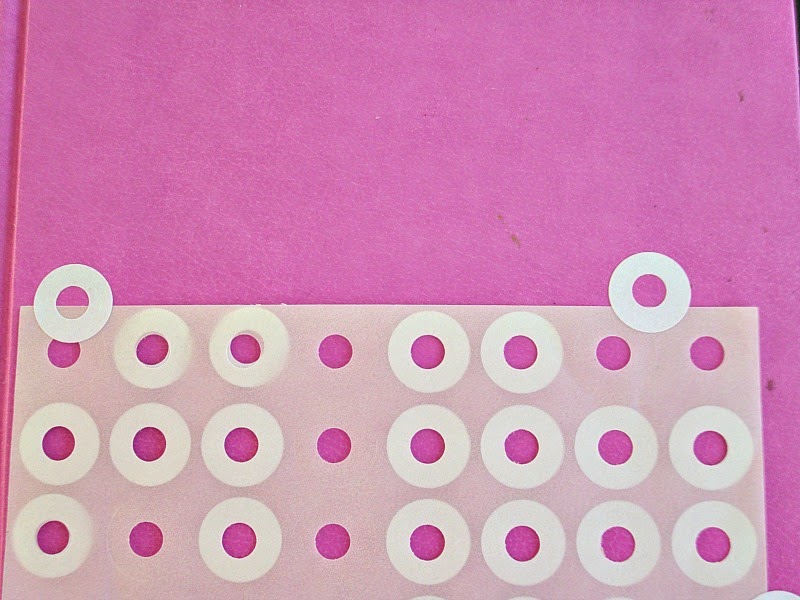 Με αυτό που βρέθηκε μπροστά μου στο γραφείο, χαρτί από αυτοκόλλητα ενισχυτικά σελίδων, χρησιμοποιώντας το σαν στένσιλ