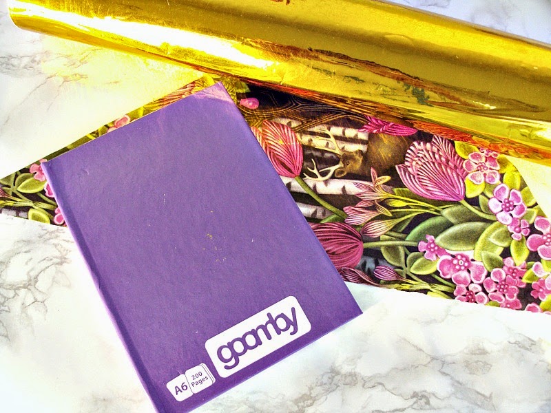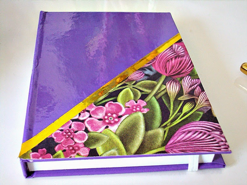 Σειρά είχε το μωβ σημειωματάριο. Θέλοντας να κρύψω το λογότυπο της εταιρείας, έπρεπε να το καλύψω με κάτι και έτσι χρησιμοποίησα το χαρτί που είχα χρησιμοποιήσει και στις θήκες περιοδικών με χρώμα και λίγο από το χρυσό αυτοκόλλητο.