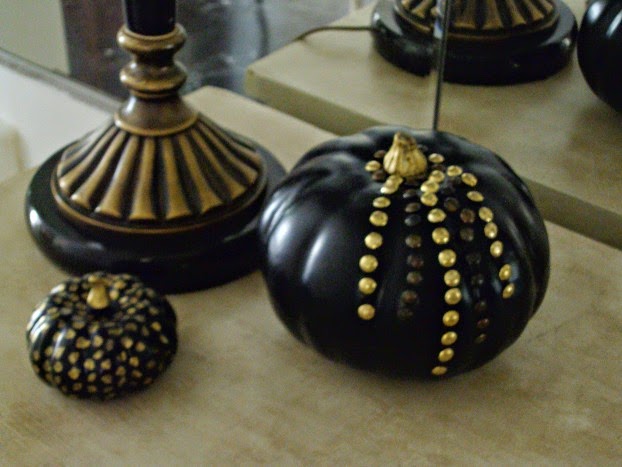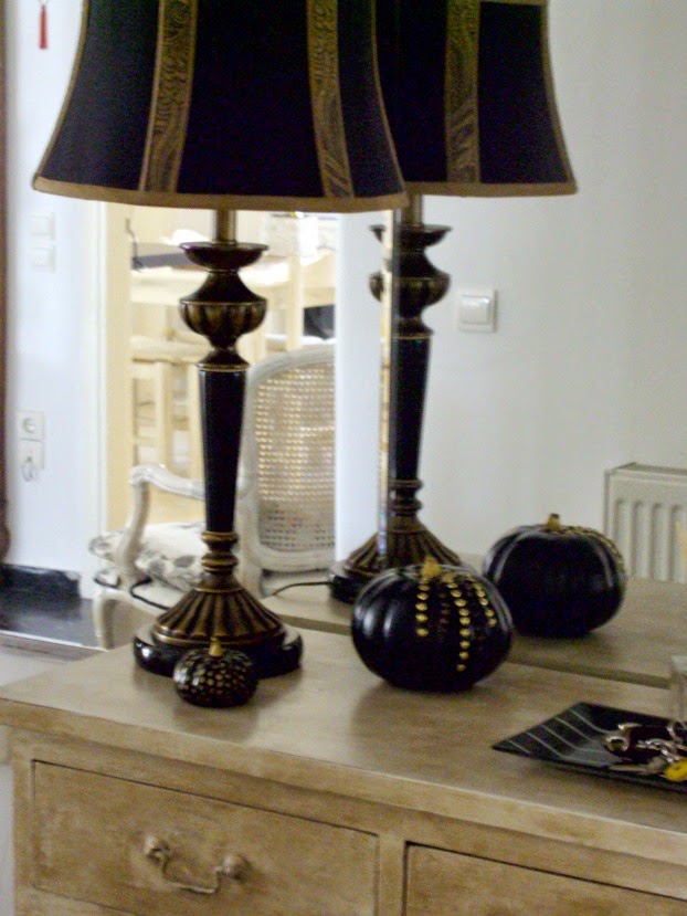 Και τέλος στην είσοδο, πάνω στο μπουφέ που είχα βάψει, οι ρόκ κολοκύθες μου