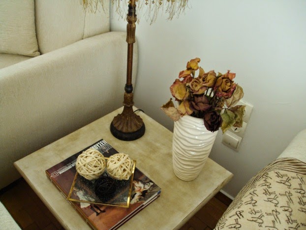 Σε ένα από τα πλαϊνά τραπεζάκια έβαλα την DIY επιτραπέζια λάμπα που είχα φτιάξει το καλοκαίρι μαζί με τις χελωνίτσες που απέκτησαν και νέο μέλος μια μικρή ασημένια.
