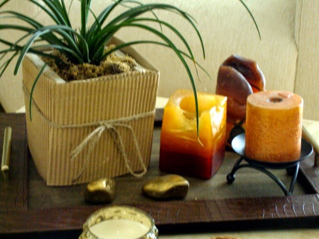 Τον έβαλα στο τραπεζάκι του σαλονιού μου με ένα φυτό που έχει επιζήσει από την άνοιξη στο σπίτι μου (δεν είμαι και η καλύτερη στην διατήρηση φυτών) και κάποια κεριά σε φθινοπωρινά χρώματα.