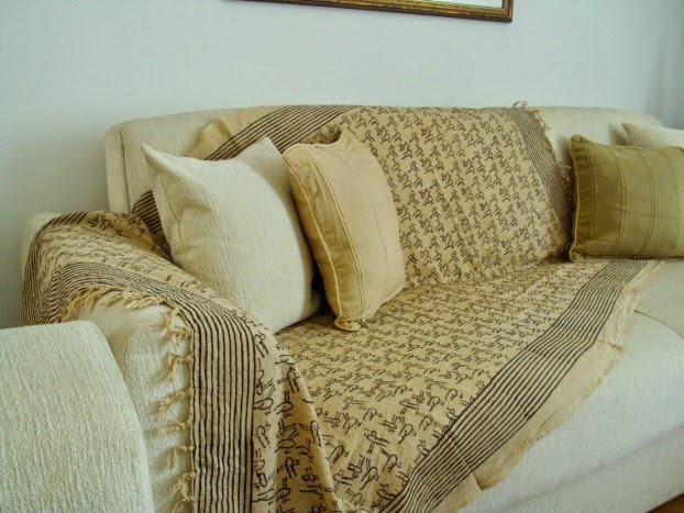 Στον καναπέ έβαλα ένα ριχτάρι και μαξιλάρια σε φθινοπωρινά χρώματα.