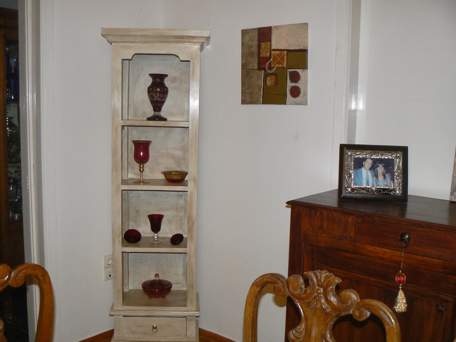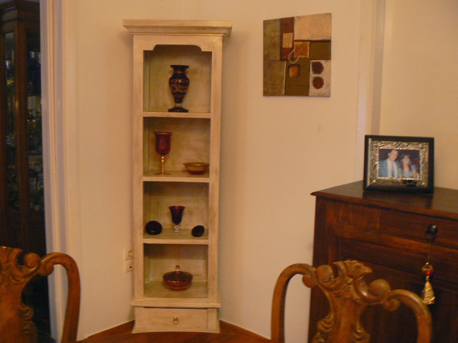 Πως μια γωνιακή ραφιέρα, ένα εντελώς συνηθισμένο, σημερινό έπιπλο άλλαξε χρώμα και στυλ και νομίζεις πως μπορεί να είναι έπιπλο μιας άλλης εποχής.