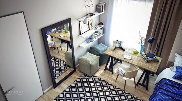 Η κουζίνα κι η τραπεζαρία ξεχωριστοί χώροι.Η δε βιβλιοθήκη στο σαλόνι υπέροχη .Για κάποιο λόγο το δωμάτιο της κόρης μου αρέσει αφάνταστα.Να'ναι το γραφείο,ο τοίχος με τα εμφανή τουβλάκια,ο μαυροπίνακας,ο μεγάλος επιδαπέδιος καθρέφτης, το ξύλο στο πάτωμα,το εσωτερικό μπαλκόνι; Όλα αυτά μαζί!Αν και το δωμάτιο του γιου δε με χαλάει. Καταπληκτικό ξύλο στο δάπεδο και στην πλάτη του κρεβατιού και πολύ φανταστικό το σχέδιο της πολυθρόνας του γραφείου.Τα φωτιστικά του και την industrial συρταριέρα τα ζήλεψα.Μόσχα,ε; Θα έδινα προκαταβολή, αλλά πολύ κρύο ,βρε, παιδί μου! Αυτό είναι που με κρατάει και δεν παίρνω την απόφαση για την αγορά του…Την καλησπέρα μου!