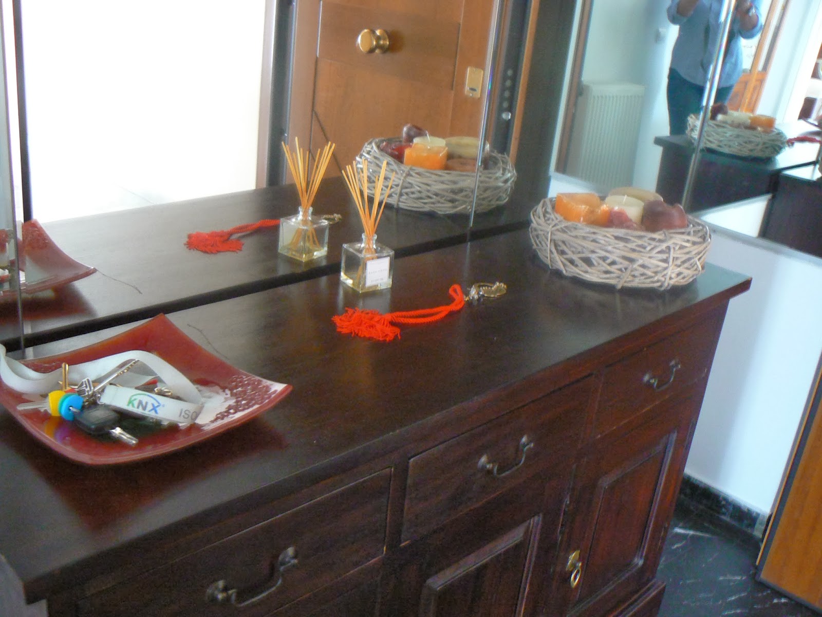 Στο σπίτι που βρίσκομαι όμως τώρα τα “ηλεκτρονικά” του σπιτιού βρήκαν αλλού την θέση τους οπότε ο μπουφές μετακόμισε στην είσοδο του σπιτιού ακριβώς με το που ανοίγει η πόρτα. Διάδρομος λοιπόν σκοτεινός σε αυτό το σημείο, ενώ το υπόλοιπο σπίτι είναι κάτι παραπάνω από φωτεινό. Τοποθέτησα μεγάλα φύλλα καθρέφτη σε όλο τον τοίχο μήπως και σώσω την κατάσταση αλλά πάλι σκοτεινό μου φαινόταν. Είναι και το πάτωμα βλέπεις μαύρο.