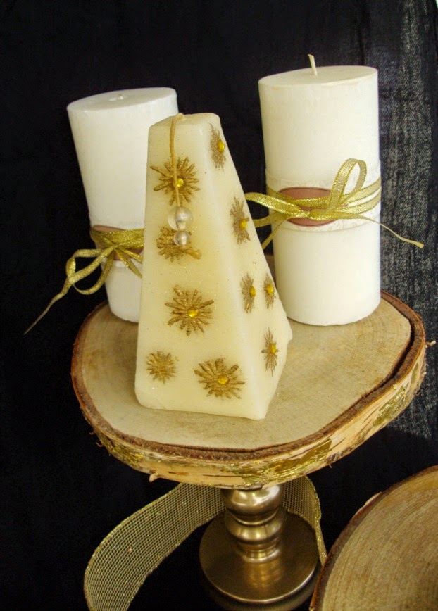 Και τελικά κατέληξαν χρυσά και βάσεις στο cake stand από φέτες ξύλου. Κόλλησα τα κηροπήγια με θερμοκόλληση και τα cake stands μου ήταν έτοιμα.