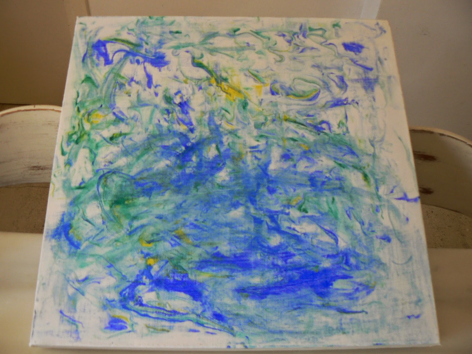 Πάτησα τον καμβά πάνω στον αφρό και τα χρώματα. Είχε περισσέψει πολύς αφρός και λέω δεν προσθέτω και λίγο ροζ να βάλω και σε δύο μικρούς καμβάδες για να τους φτιάξω για το δωμάτιο της κόρης μου;